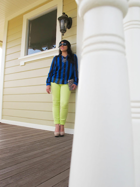 This Spring I've been loving all sorts of bright colors! I have to admit I hated a lot of neon pieces I was seeing before but I've warmed up to them and have definitely been embracing this trend. Although I still can't help but think I'm going to have a daughter one day who will look back at these pictures and ask what in the world I was thinking wearing pants that look like a highlighter!